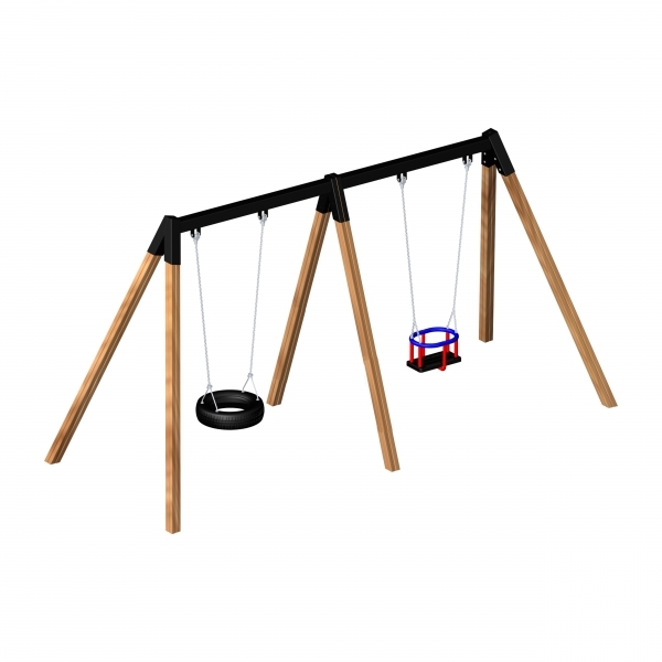 Huśtawka podwójna to podstawowy element wyposażenia każdego placu zabaw. Dostarcza radości i zabawy dzieciom w wieku szkolnym. W kolekcji klasycznej konstrukcja zestawu dostępna jest w dwóch wersjach technologicznych: drewnie sosnowym klejonym i litym.