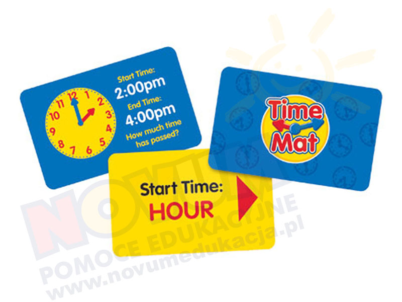 Mata, która uczy odczytywania godzin na zegarze. Na planszy znajduje się tarcza zegara ze wskazówkami w dwóch kolorach. Zadaniem gracza jest ustawienie wskazówek zgodnie ze wskazaniem kostek. W zestawie : • winylowa mata o wym. 137 x 137 cm • 4 kostki ( 2 czerwonymi, wskazujące godziny i 2 niebieskie, wskazujące minuty) • 20 kart • instrukcja