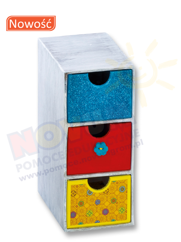 Komoda wykonana z trwałego kartonu, którą można ozdobić farbami czy naklejkami. Wym. 7x9,5x16 cm