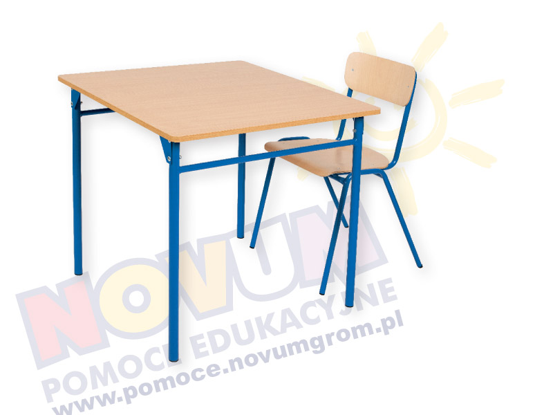 Stolik pojedynczy, posiad bezpieczne zaokrąglone narożniki. Wym.: wys. 64 x szer. 70 x gł. 50 cm Przy zakupie kompletu krzesełek i stołów dla 30 dzieci istnieje możliwość pomalowania stelaży na dowolny kolor z palety RAL za dopłatą 10%!