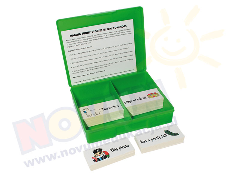 Dziecko może dopasować 20 początków i końcówek zdań, które układają się w 40 zabawnych zdań. 40 kart wykonanych z trwałej tkaniny winylowej. Rozmiar karty: 95 x 40 mm .