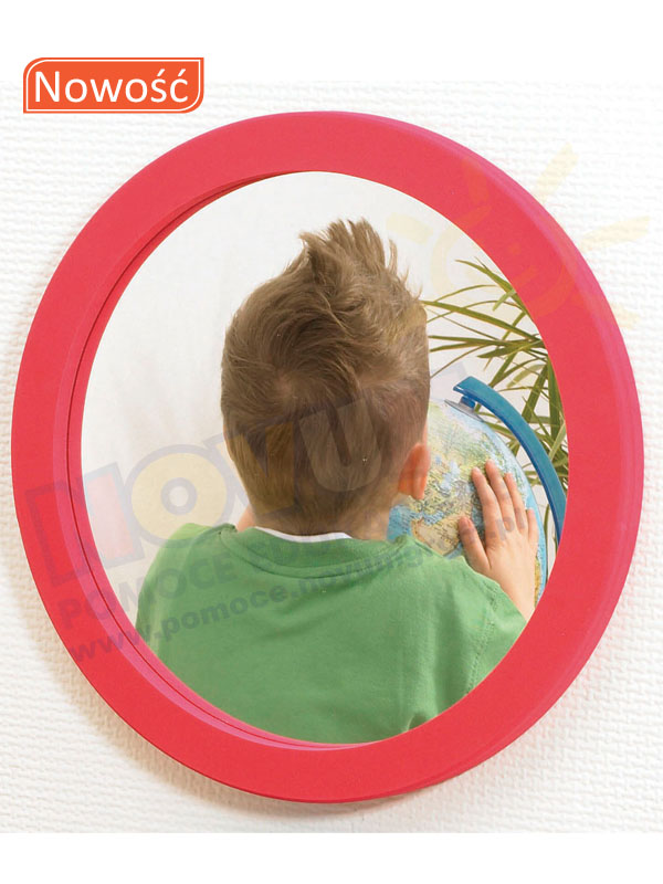 Okrągłe, bezpieczne lustro w ramie z pianki EVA, śr. 32 cm, w zestawie taśma umożliwiająca mocowanie lustra do ściany.