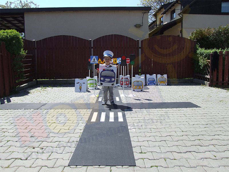 Zestaw pionowych znaków drogowych to pomoc dydaktyczna symulująca różne sytuacje drogowe, służy do tworzenia miasteczka ruchu drogowego w pomieszczeniach zamkniętych i otwartych. Lekki, składany, łatwy w utrzymaniu czystości, umożliwia dopinanie kilku znaków na jednym słupku, tarcza posiada zaczepy łatwe do szybkiego montażu i demontażu. W zestawie 11 szt. Wysokość 100 cm