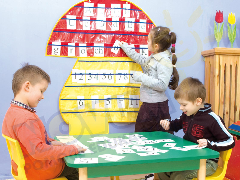Kolorowa, wykonana z materiału makatka to jeden z bardzo ciekawych sposobów na ćwiczenia wdrożające do liczenia, czytania oraz pisania. Forma pomocy ułatwia trenowanie działań arytmetycznych, a także wykonywanie analizy i syntezy literowo-głoskowej. Ciekawe tło i możliwość szeregowania czy układania cyfr oraz liter w przezroczystych kieszonkach wpływa motywująco na dzieci, wspomaga zapamiętywanie i utożsamianie graficznych symboli z odpowiadającą im liczbą lub głoską. Dzięki swoim kształtom makatki stanowią interesujący element szkolnej dekoracji ściennej, szczególnie tej, która nawiązuje tematycznie do zmieniających się pór roku. Makatka z kieszonkami, nie zawiera kartoników z literkami. Wym.: 110 x 110 cm.Każde dziecko stając przed wyzwaniem jakim jest nauka liczenia, czytania i pisania, ma nie lada orzech do zgryzienia. Przyjdzie zmierzyć mu się z trudnościami, jakie stawia przed nim zarówno język, jak i matematyka. Ciekawą i fajną pomocą w stawianiu pierwszych kroków w poznawaniu pisma, działań arytmetycznych jak i w nauce poprawnej wymowy jest Makatka Grzybek. Kolorowa makatka wykonana z materiału, która w przyjemny sposób pomoże uporać się z trudnościami językowymi i nie tylko. W przystępny i prosty sposób przedstawia cyfry oraz litery. Kolorami jak i formą zachęca do nauki, jednocześnie pobudzając i pozwalając na efektywne jej wykorzystanie. Ułatwia zarówno trenowanie działań arytmetycznych, jak i wykonywanie analizy oraz syntezy literowo-głoskowej. Działa motywująco oraz wspomaga proces zapamiętywania u najmłodszych. Z powodzeniem może zostać powieszona na ścianie na przykład w szkolnej sali, a poza pomocną formą nauki oferuje ciekawą dekorację, która wpisuje się w obowiązującą na dany czas porę roku.
