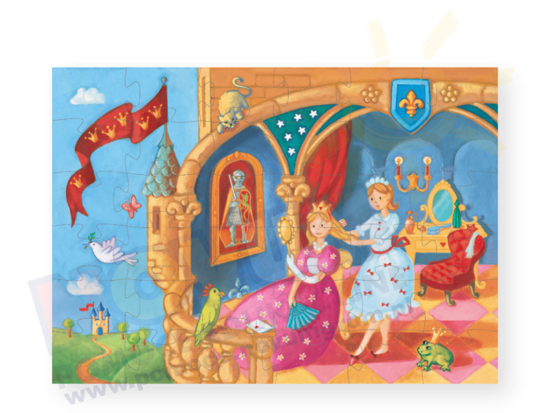 36-elementowe puzzle zapakowane są w kartonowe pudełko z wizerunkiem księżniczki.