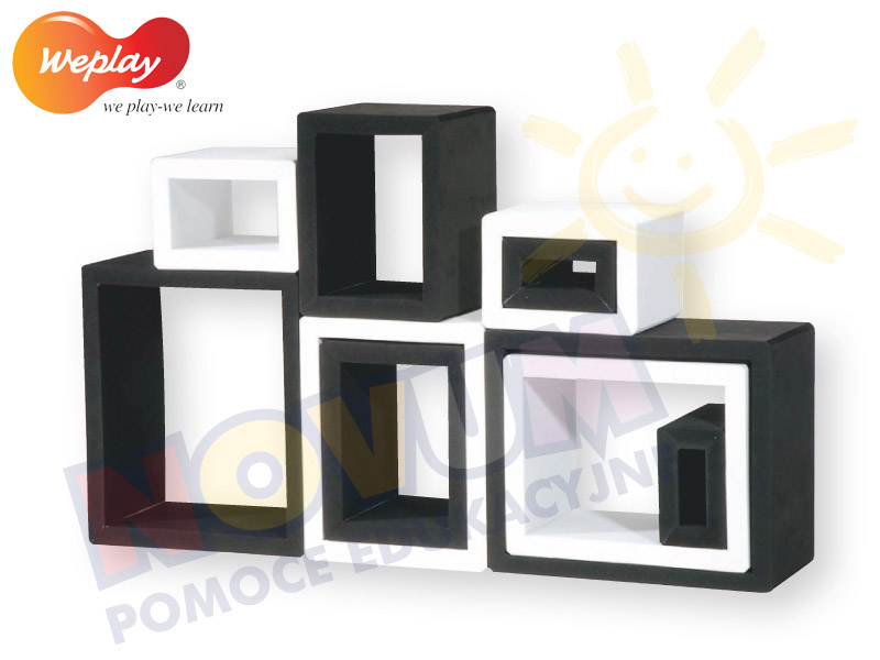 Kreatywne czworoboki. Materiał na ciekawe kompozycje przestrzenne. Metoda na poznawanie kontrastów jasności i tonów. Wspaniały sposób na zrozumienie relacji przestrzennych, wymiarów i proporcji. Proste forma zmuszająca wyobraźnię do wiekszej pracy. 6 magicznych ramek z wysokiej jakości pianki bezzapachowej. Wym. ramek: 30 x 25 x 15 cm, grubość 2 cm, kolor: czarno-białe.