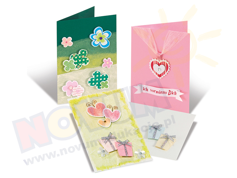 W zestawie:- 10 kart papieru dekoracyjnego 270 GSM w 5 wzorach,- 10 kart papieru transparentnego 115 GSM w 5 wzorach,- 10 kart papieru barwionego 130 GSM w 5 kolorach. 30 kart, o wym.: 24 x 34 cm.