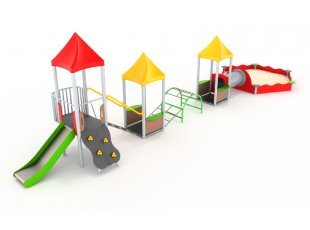Kolorowy plac zabaw pełen przygód. Plac składa się z kilku skomponowanych elementów zabawowych. Piaskownica , tunel, siatka, ścianka wspinaczkowa, drabinka i ślizgawka , aby zapewnić dzieciom moc atrakcji. Wszystko w estetycznej formie, wykonane z najlepszych materiałów. Plac spełnia wszystkie wymogi bezpieczeństwa określone w normie PN EN 1176:2008. Mocna stalowa konstrukcja zabezpieczona przed korozją poprzez cynkowanie i podwójne malowanie farbą proszkową, dzięki czemu jest całkowicie odporna na warunki atmosferyczne. Kolorowe płyty i tuba wykonane z PE odpornego na słońce i wilgoć. W placu wykorzystano linę stylonową z rdzeniem metalowym. Ślizgawka atestowana przez TUV, jest wykonana z tworzywa kompozytowego. W placu zastosowano wyłącznie śruby, wkręty, nakrętki i podkładki ze stali nierdzewnej. Istnieje możliwość modyfikacji każdego placu zabaw BUGLO zarówno pod względem kształtu, użytych materiałów jak i kolorystyki.