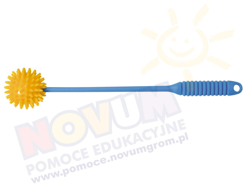 Piłeczka pokryta jest miękkimi kolcami. Idealna do stymulacji wielozmysłowej, pobudzenia krążenia krwi lub relaksującego masażu. Średnica 7 cm, długość rączki 32 cm.