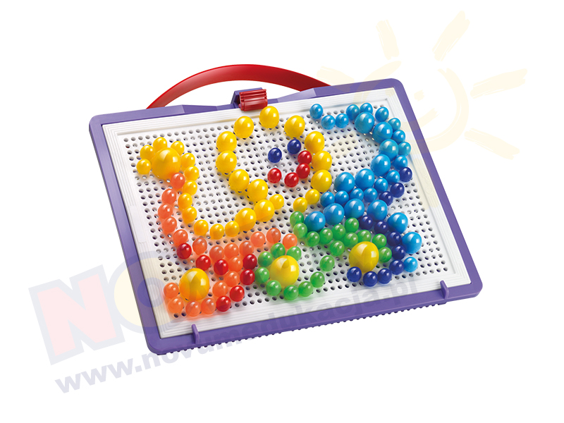 Zabawka rozwija kreatywność oraz ćwiczy koordynację wzrokowo - ruchową. Zawartość: 160 dużych kołeczków o średnicy 10, 15, 20 mm, walizka, album z przykładami do odwzorowania. Wiek 3