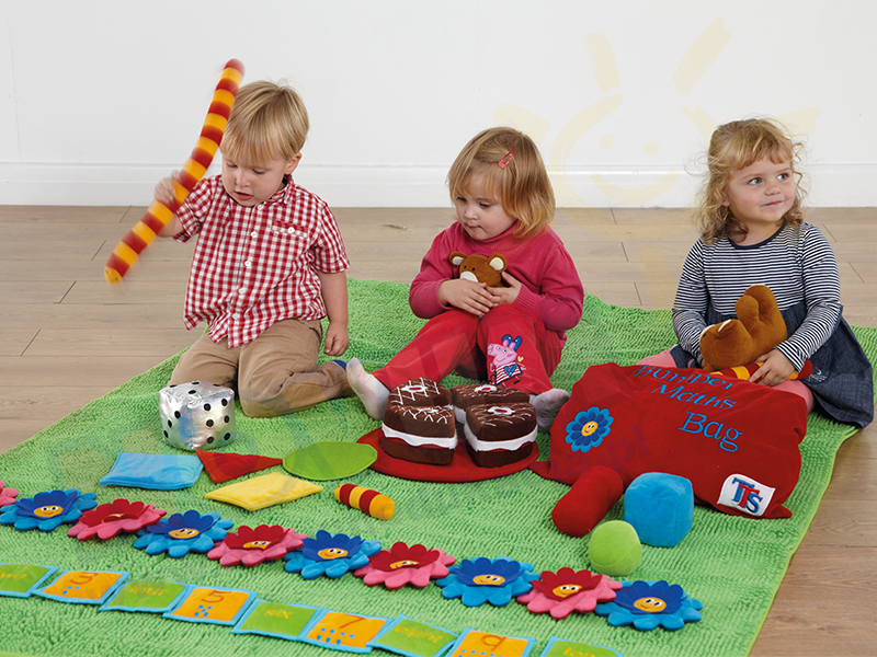 Liczę i porównuję Idealny zestaw wprowadzający maluchy w świat matematyki. Gra uczy nie tylko rozpoznawania figur, kształtów, kolorów, liczb w zakresie do 10, porównywania wielkości i porządkowania, ale także wprowadza pojęcie ułamków. Przyjazne w dotyku, kolorowe przedmioty zachęcają maluchy do zabawy i jednocześnie, nauki. Przykładowe wymiary elementów: średnica tortu - 24 cm, wysokość największego misia - 16 cm, wymiar kostki z liczbami - 10 x 10 cm. Zalety: - zaznajomienie i utrwalenie znajomości podstawowych kolorów, figur i kształtów, - umiejętność porównywania i stopniowania - długi, dłuższy, najdłuższy albo mały, średni, duży, - wprowadzenie podstawowych pojęć matematycznych, - wprowadzenie liczb od 1 do 10, - wprowadzenie pojęcia połowy i ćwierci. W zestawie: - 1 tort, - 1 talerz, - 10 tafelków z cyframi, - 10 kwiatków, - 3 misie, - 3 węże, - 3 bryły geometryczne, - 4 figury geometryczne, - 1 kostka do gry, - 1 duża torba o wym.: 48 x 52 cm.