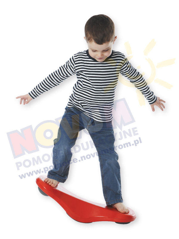 Ćwiczenia na desce rozwijają koordynację wzrokoworuchową, uczą panowania nad ciałem, własnymi ruchami. Antypoślizgowa powierzchnia zapewnia bezpieczną zabawę. Wytrzymuje obciążenie do 75 kg. Wym.: wys. 14 x szer. 22 x dł. 52 cm