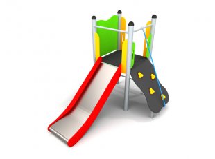Miniaturowa wieżyczka ze ślizgiem. Na wieżę prowadzi drabinka oraz pochylnia z kamieniami wspinaczkowymi ze wspomaganiem linowym.