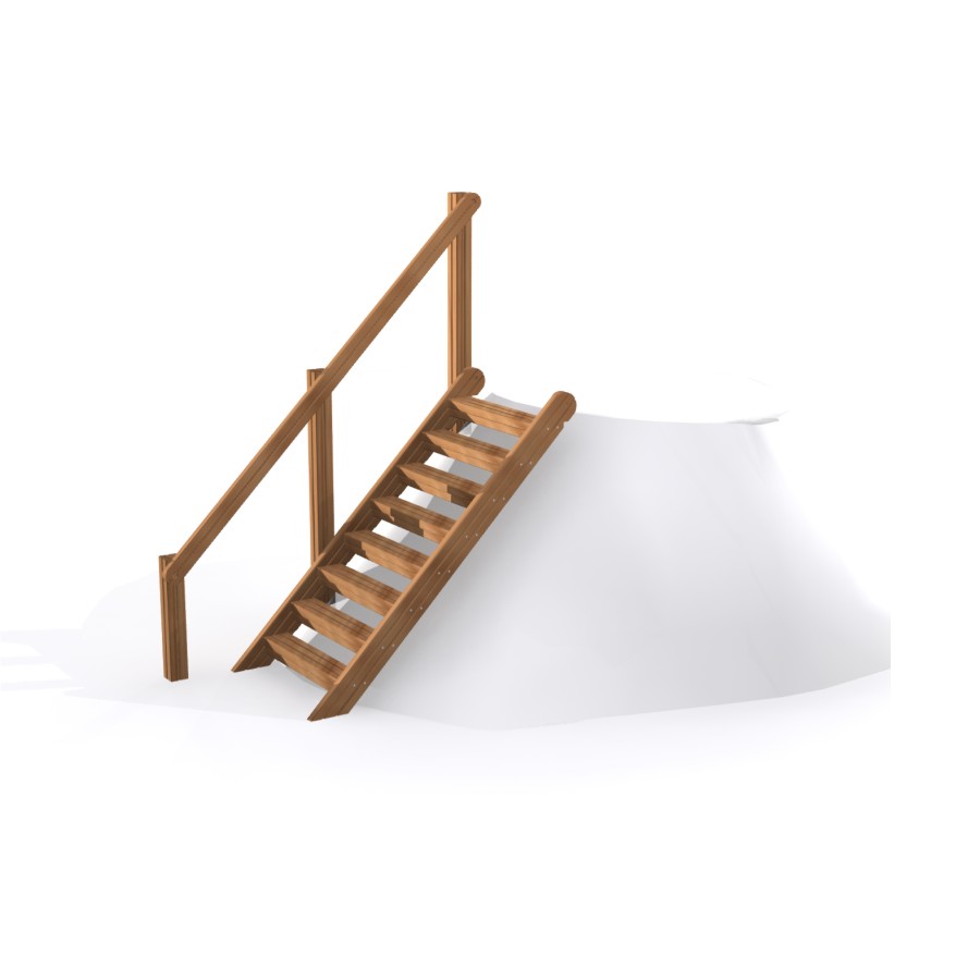Konstrukcja : Stal (rury Ø 114mm slupy, barierki i pozostałe Ø 32mm), cynkowane ogniowo malowane proszkowo.Ślizg: Stal nierdzewna boki HDPEŚcianki dach: Płyta HDPEPodest i schody: płyta antypoślizgowa, wodoodporna.Zaślepki rur: PolipropylenŚruby: Klasa śrub 8,8, o podwyższonej wytrzymałości.Wszystkie elementy wystawione na działanie warunków atmosferycznych ze stali nierdzewnej, pozostałe są ocynkowane.