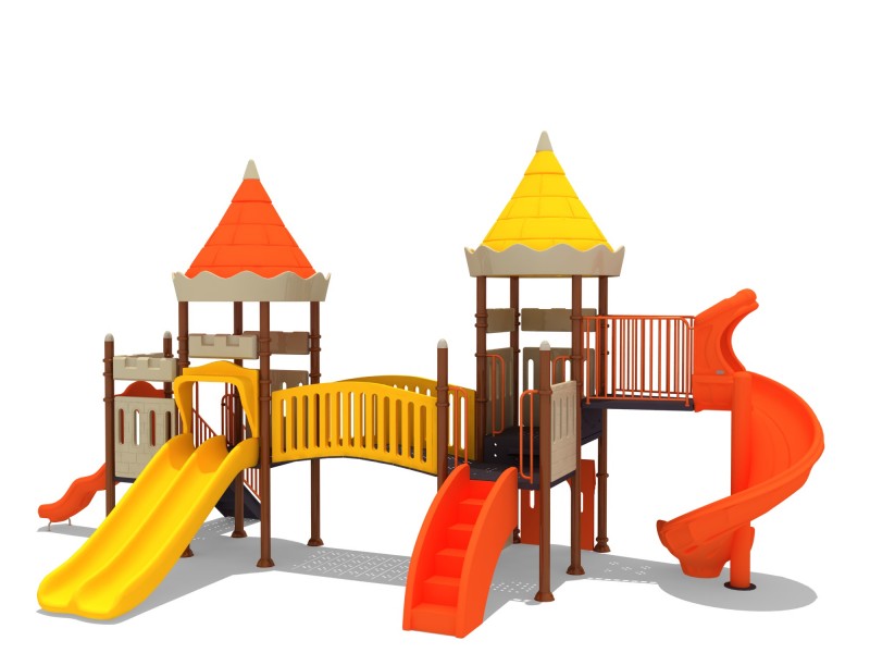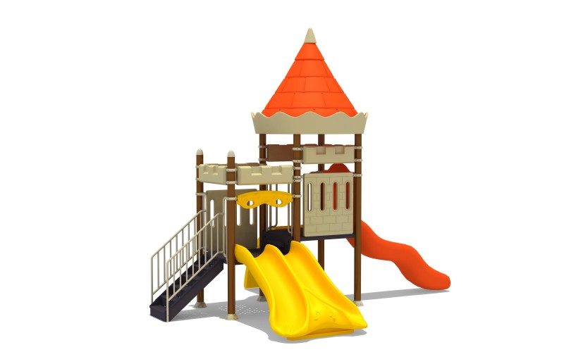 Plac zabaw nawiązuje wyglądem do zamku. Zestaw wykonany ze stalowej konstrukcji, platformy i schodki metalowe jednocześnie powlekane PCV, zjeżdżalnia z podwyższonej trwałości tworzywa, elementy wykończeniowe z kolorowego tworzywa.
