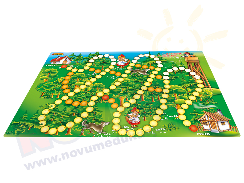 Czerwony Kapturek skierowana jest do najmłodszych dzieci. Jej proste zasady oparte są na fabule tej najpopularniejszej z bajek. Dzieci w trakcie gry emocjonują się rywalizacją, a jednocześnie są uczestnikami przygód głównej bohaterki Zawartość pudełka: - plansza,- 4 pionki,- bajka,- kostka do gry,- instrukcja. Gra przeznaczona: dla 2 do 4 graczy.