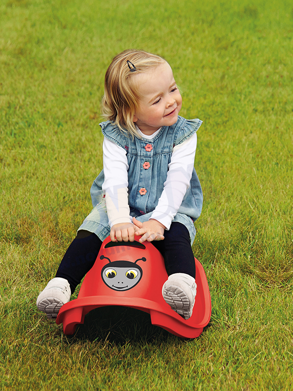 Bujak w kolorze czerwonym z naklejkami. Wysokość siedziska od podłogi 22 cm. Udźwig do 50 kg.Wym.: 71 x 27 x 37 cm