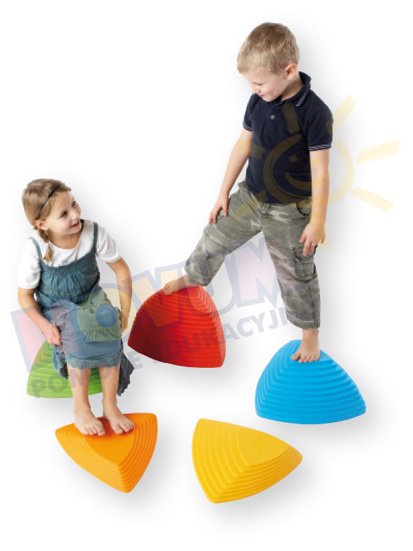 Kolorowe pagórki o różnych wysokościach zachęcają dzieci do zabawy i aktywności ruchowej. Intensywne kolory oraz ciekawa faktura zapewniają dodatkowo tymulację wielozmysłową. Idealne jako element toru przeszkód, korygujący płaskostopie. W zestawie 5 pagórków w 3 wymiarach:- 36 x 36 cm; wys. 8,5 cm- 40,5 x 40,5 cm; wys. 17 cm- 42 x 42 cm; wys. 25,5 cm