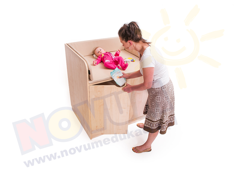 Przewijak posiada 6 regulowanych półek, w całości wykonany jest z płyty w kolorze klonu, wyposażony jest w metalowe prowadnice oraz stoper zapobiegający trzaskaniu. Przewijak sprzedawany jest bez materaca. Wym.: wys. 108 x szer. 100 x gł. 76 cm