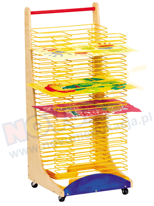 Oszczędność miejsca Suszarka Standard na prace plastyczne zaprojektowana specjalnie z myślą o przedszkolach, cieszy się zaufaniem naszych klientów od lat. Dzięki niej możesz teraz suszyć prace plastyczne swoich podopiecznych: malowane farbami, tuszami a także wyklejane bez obaw, że ulegną zniszczeniu. Swoją funkcjonalność zawdzięcza kółeczkom i uchwytowi, które ułatwiają przestawianie mebla w dowolne miejsce tak aby mebelek nie przeszkadzał w prowadzonych zajęciach lub podczas zabawy. Zalety suszarki: - posiada 25 poziomów i pomieści prace plastyczne formatu A3, wszystkich wychowanków, - kółeczka ułatwiają przemieszczanie, - wygodny uchwyt, - estetycznie wykonana w kolorze naturalnego drewna z kolorowymi akcentami, dzięki czemubędzie komponowała się do mebelków w każdym przedszkolu. Wykonanie - pręty wykonane ze stali malowanej proszkowo, nie rdzewieją, - stelaż wykonany z trwałej i estetycznej sklejki o grubości 12 mm Dodatkowe informacje Suszarka posiada deklarację CEGwarancja: 2 lata Wymiary suszarki: wysokość 83 cm, szerokość 36 cm, głębokość 38 cm Wymiary poziomów: 32 x 34 cm, odległość między prętami ok.2,5 cm