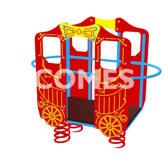 Czteroosobowa huśtawka sprężynowa kształtem przypominająca dyliżans, to nasza nowa zabawka, przeznaczona zarówno dla młodszych jak i starszych dzieci (przedział wiekowy 3-15 lat). Grawerowane w fantazyjne wzory ścianki boczne wykonane z trwałego tworzywa HDPE, zachęcają do zabawy i pobudzają dziecięcą wyobraźnię, pozwalając się przenieść w świat „dzikiego zachodu”. Huśtawka to ciekawy element każdego placu zabaw, który sprawdza się na każdej nawierzchni. Firma Comes gwarantuje zadowolenie z produktu i bezpieczeństwo dzieci podczas zabawy. Produkt spełnia wymogi polskiej normy PN-EN 1176:2009, co potwierdzają certyfikaty wydane przez Biuro Badań i Certyfikacji COBRABiD w Warszawie.
